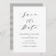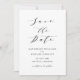 Simple and elegant save the date announcement featuring script, bold typography and stripes pattern.
