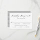 Customizable RSVP card featuring black minimalist script, typography and stripes pattern. This simple response card is perfect for weddings and similar events. Other colors and matching items are available.