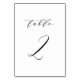Table 2. Elegant table numbers card featuring black minimalist script. This black and white table number is perfect for weddings, graduation, baby showers, bridal showers and other events. Other number and colour are available.