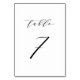 Table 7. Elegant table numbers card featuring black minimalist script. This black and white table number is perfect for weddings, graduation, baby showers, bridal showers and other events. Other number and colour are available.