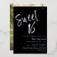 Black Minimalist Sweet 16th Birthday Party Silver Foil Invitation