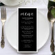 Add a touch of elegance to your wedding reception with our black minimalist wedding dinner menu. Ideal for formal receptions, upscale wedding dinners, or chic pre-wedding events, this sleek and sophisticated design complements a variety of wedding styles. The timeless black background with a minimalist layout ensures it fits perfectly with both modern and classic wedding themes. Fully customizable to feature your dinner selections, this menu card offers both a practical and stylish way to showcase your meal options while adding a refined element to your wedding decor.