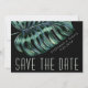 A unique dark and moody tropical color scheme in green, black, and gray monstera leaf save the date card designed for a sophisticated color theme destination wedding, beach wedding, or a moody tropical island wedding that refuses to fit everyone else's expectations of "beachy". The Monstera plant is a HUGE tropical leaf used to make stunning wedding decor in Florida, Mexico, Hawaii, Caribbean islands, Dominican Republic, Jamaica. Turn it into a bold statement for your wedding by incorporating it in floral arrangements and your wedding stationery!