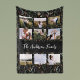 Black modern 9 photo watercolor botanical floral fleece blanket