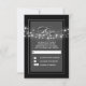 String of lights wedding RSVP cards with black grey and white calligraphy and twinkle lights hanging on the word RSVP.