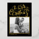 Black Modern Calligraphy Photo Merry Christmas Foil Holiday Card