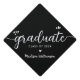 Black Modern Chic Elegant Script Hearts Name Class Graduation Cap Topper