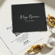 A sleek and stylish square business card featuring a solid and classic black background with your name or company name in an elegant signature script. Fully customizable to match your brand identity—edit the background color, text, and logo effortlessly.