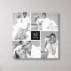 Black Modern Grid Monogram Wedding 4 Photo Collage Canvas Print