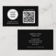 Enhance your professional presence with this Black Modern QR Code Logo Business Card featuring a minimalist black and white design with a template for your logo, QR code, company or business name, website, social media handles, and job title for a sleek appearance. It's a convenient way to promote your business. Customize and order your business cards online.