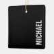 Modern Minimalist Design featuring personalized name in white modern bold sans serif font style on black background.