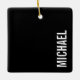 Black Modern Minimalist Personalized Name Ceramic Ornament