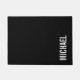 Modern Minimalist Design featuring personalized name in white modern bold sans serif font style on black background.