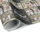 Black natural modern elegant traditional contemporary muted colors beige, black and white multi photo collage holiday Christmas Santa Reindeer unique persona lized holiday gift wrap.