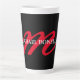 Black modern red monogram professional latte mug