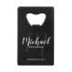 Black Modern Script Personalized Groomsmen Credit Card Bottle Opener