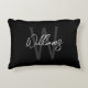 Black Modern Script Personalized Monogram and Name Accent Pillow