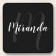 Black Modern Script Personalized Monogram and Name Beverage Coaster