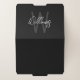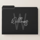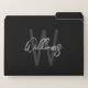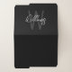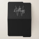 This design features personalized name in white modern handwriting script font style and monogram in grey modern sans serif font style as background, on black background.
