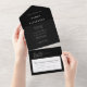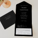 Welcome to our Black Modern Script Wedding All In One Invitation design, where modern minimalism meets the artistry of calligraphy. This curated aesthetic brings an air of sophistication to your special day- with a twist of boho, casual charm. The combination of simple typography with a stylish script font adds a unique personality to your wedding. This classic design offers a timeless, polished look that's perfect for spring, summer, fall, or winter weddings. A simple understated palette of black backdrops and white text creates the perfect neutral backdrop for your celebration. Make your wedding truly elegant with our lovely Modern Script collection. As with all of our designs, if you have any questions or special requests, please just ask.