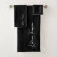 A beautiful set of black bathroom towels that can be customized to your name. The signature script font is classy and stylish.