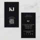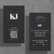 Black Modern Solid Monogram Initials QR Code Business Card