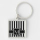 Black Modern Stripe with Monogram Keychain