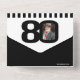 Bold simple mono graphic black and white photo template all-in-one 80th birthday party invitation. Personalize this detachable milestone birthday invitation with your own birthday party event details, and up to six different photos of the birthday boy or girl. Invite comes with a simple RSVP detachable reply card where you can also request a song to dance to or ask for any dietary or special requirements if required. Simple three photo circles for your now and then photos from the past 80 years. Other colors and matching items are available. © Original design by Sarah Trett for www.mylittleeden.com on Zazzle.