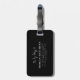 This elegant monogram golf bag or luggage tag features a bold black background with crisp white fonts and artwork. The simple outlined golf bag filled with clubs is drawn in white for a clean, striking contrast. A classic serif font initial monogram is placed on the bag, with the full name displayed below in the same white serif font for a timeless touch.