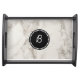 You can serve up your goodies on this Black Monogram Marble texture castle tray. It is a funky, stylish, fun, in a large size, serving tray for both kids and adults. It is best for Halloween, birthday party, costume party, dinner party, masquerade party, and more! Use the template field to add your monogram initial or letter or select “customize it” for more editing options like adding your name, text or photo to make your own, unique, personalized, one-of-a-kind custom design. Other colors available.