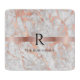 An elegant design to personalize with black name and large black monogram on rose gold band over white and rose gold marble.