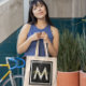 Black monogram personalized tote bag