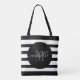 Black Monogram Script Calligraphy Modern Stripe Tote Bag