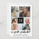 Monogrammed graduate announcement card you can personalize with six photos of the graduate in a minimalist collage in black and white with their initial in the middle. Congrats graduate! is written a bold calligraphy script.