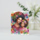 This vibrant Black mother and daughter floral portrait postcard features a loving mother and her young daughter, both wearing beautiful natural afros adorned with colorful flowers and botanical accents. Their gentle expressions and warm connection capture a tender moment of love, pride, and family bond.