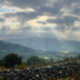 Brecon Beacons - Banana Brycheiniog National Park. Black Mountains in South Wales. Welsh Countryside Landscape. The photograph features wonderful shafts of light from a dramatic sky.