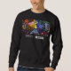 Black crew neck sweatshirt featuring the mural by Bradford Johnson from our headquarters.
