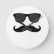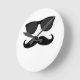 Fun Black and White Mustache and Sunglasses Wall Clock. Modern style with simple, bold graphics with mustache or moustache humour. MovieFun©