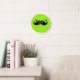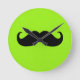 Black Mustache on Green Background Round Clock