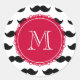 Black Mustache Pattern, Red Monogram Classic Round Sticker