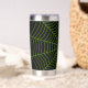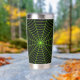 Black neon green spider web Halloween pattern Insulated Tumbler. Drinkware with Spooky Halloween cobweb gothic design and custom black background.