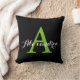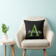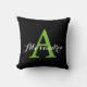 Black Neutral Solid Color Bright Green Monogram Throw Pillow