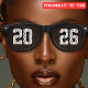 Cool black retro sunglasses with text "2024". Unisex for men and women. Great for a New Years Eve party. Also, good for senior graduation.