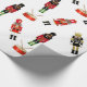 This festive Christmas holiday wrapping paper features three black nutcrackers. Its red, green, gold, and black colors are perfect for the holiday season to wrap presents and gifts. It sets the tone for the perfect holiday décor.