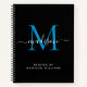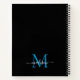 Elegant Black Ocean Blue Monogram Initial Script Name Recipe Notebook