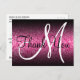 Black Ombre Hot Pink Glitter Monogram Thank You Postcard