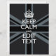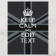 Your personalized Keep Calm saying on a bold black on black union jack decor. A personalized Keep Calm style saying on a one of a kind gift. Humorous or whimsical try on your creative words on two editable lines of text. Remember to use CAPITAL letters for best results.