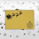 Elevate your holiday dining experience with this elegant Black on Gold Merry Christmas Laminated Placemat. Featuring a classic design of Santa in his sleigh pulled by reindeer, alongside a festive "Merry Christmas" bauble, this placemat is both stylish and durable. Perfect for adding a touch of holiday cheer to any table setting.