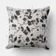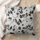 Black on Silver Pattern Birds and Cherry Blossoms Throw Pillow