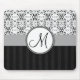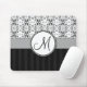 Black on White Damask and Stripes with Monogram Mouse Pad